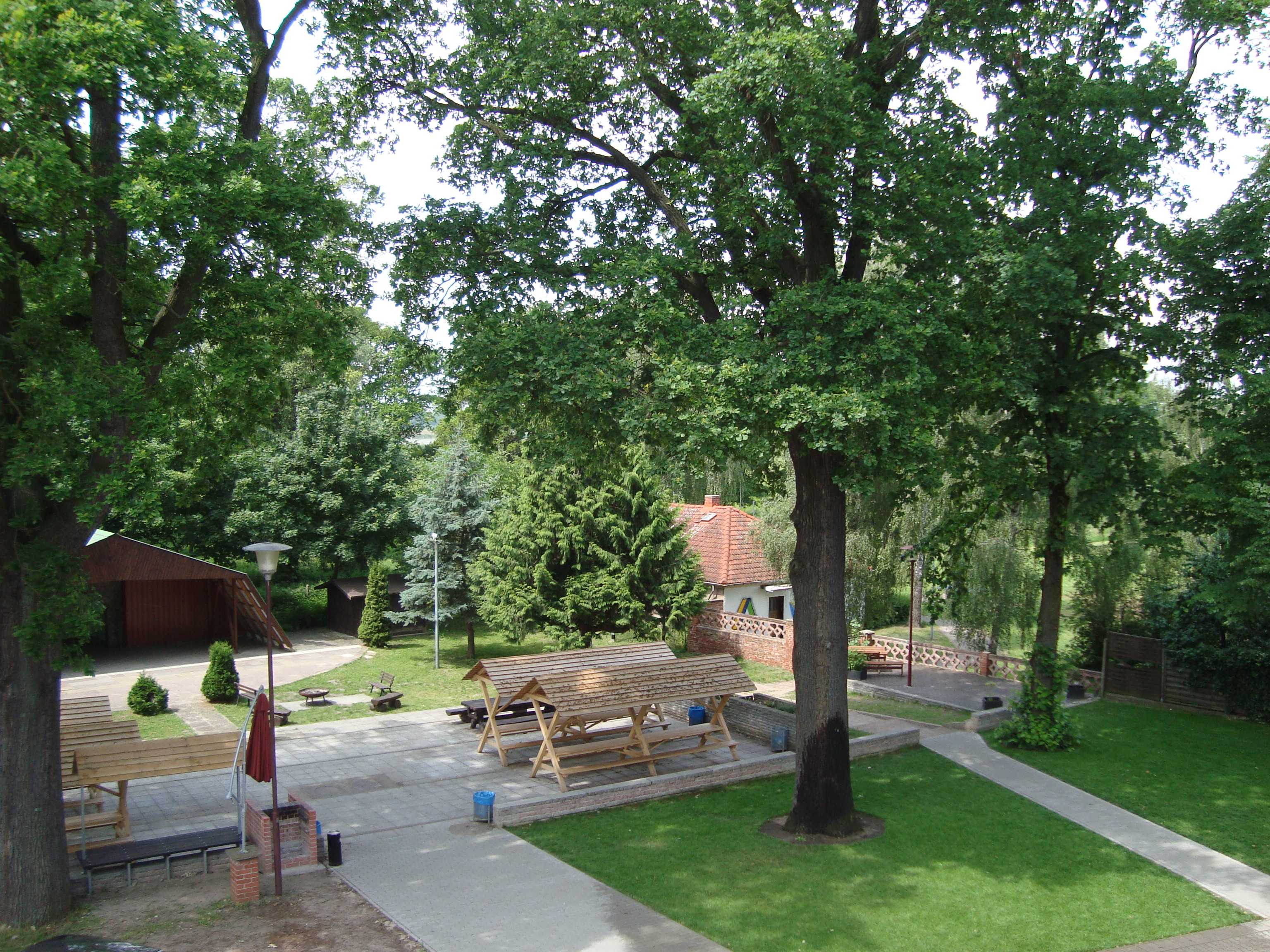 Auf dem 15.000m² großen Außengelände können Volleyball und Basketball gespielt oder auf der überdachten Freilichtbühne kleine Theaterstücke geprobt werden.