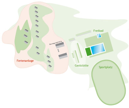 Fitnessraum mit Laufbändern, Gymnastikraum, Tischtennis, Billard, Kicker, Fahrradverleih, Spiel- und Kleinfeldsportplatz, große Spielwiese, Kreativraum, Lagerfeuerstelle, Grillstelle & Streetballanlage (teilweise gegen Gebühr)