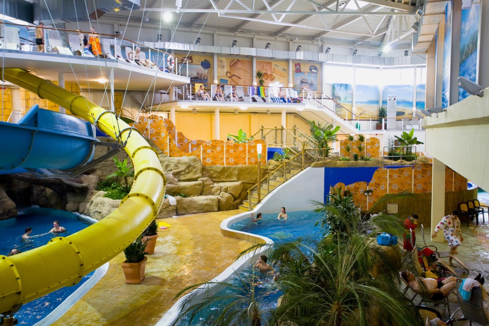 subtropischem Klima gibt es neben einem Aquarium, Wasserfall und Rutschen auch Whirlpools und eine Saunalandschaft. Am Strand werden diverse Wassersportarten angeboten. Neben allen Wasserratten
