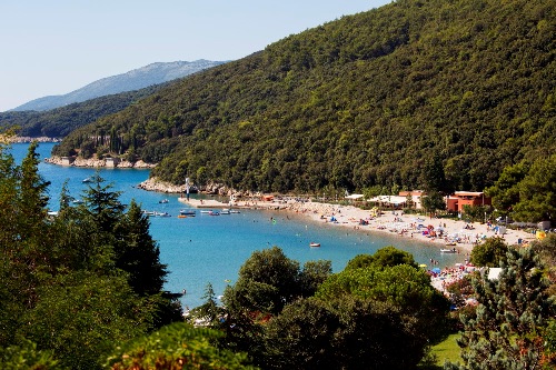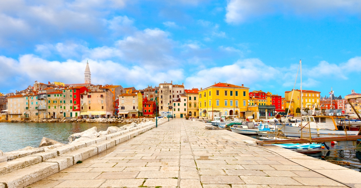 Istrien, azurblaues und kristallklares Meer. Mediterrane Architektur in den Hafenstädtchen Porec, Rabac und Rovinj sowie buntes Treiben entlang der Uferpromenaden.